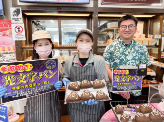 「道の駅 許田(きょだ)」(名護市許田)にあるパン店「ラガール」で現在、「光文字パン」が現在、地元民の人気を集めている。