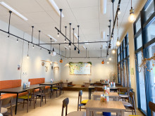 店内は、「居心地の良い空間」をコンセプトに、木目調と白を貴重にした。席数はカウンター=5席、テーブル席=16席。ダーツ機1台を備える。