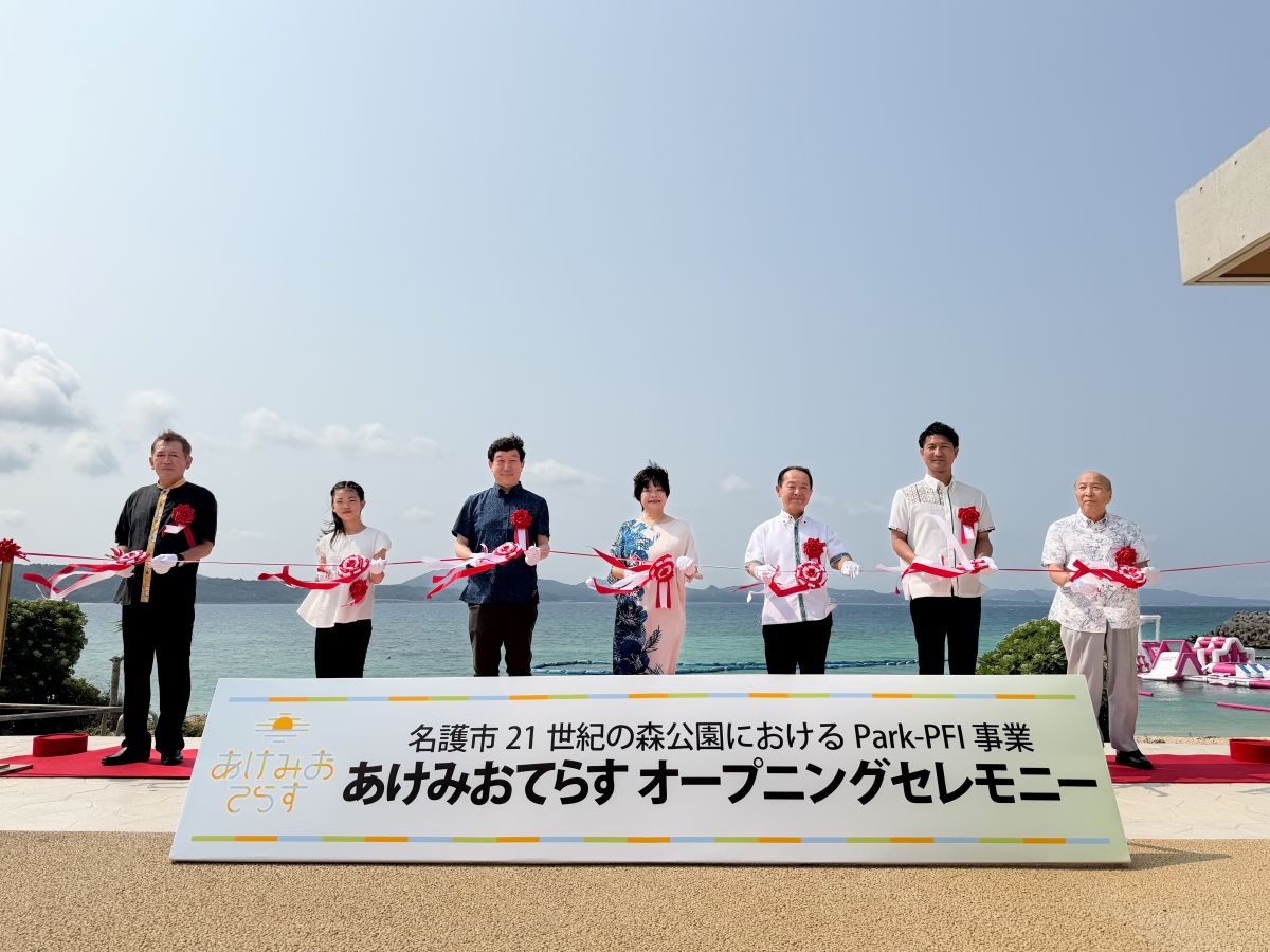 渡具知武豊市長は「名護湾を一望できる景観は他にない価値であり、新たな観光スポットになると確信している。市民や観光客が集うにぎわいの場となるよう、事業者と連携を図りたい」と話す