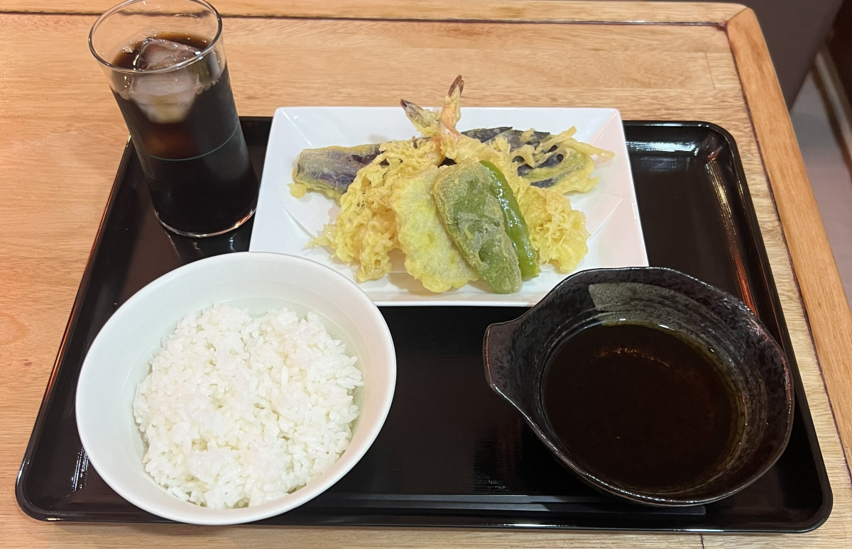 同店オリジナルたれ「甘っったれ」と相性が良い天ぷらを盛り合わせた