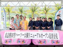 本部の「ハーソー公園」リニューアルオープン記者会見の様子